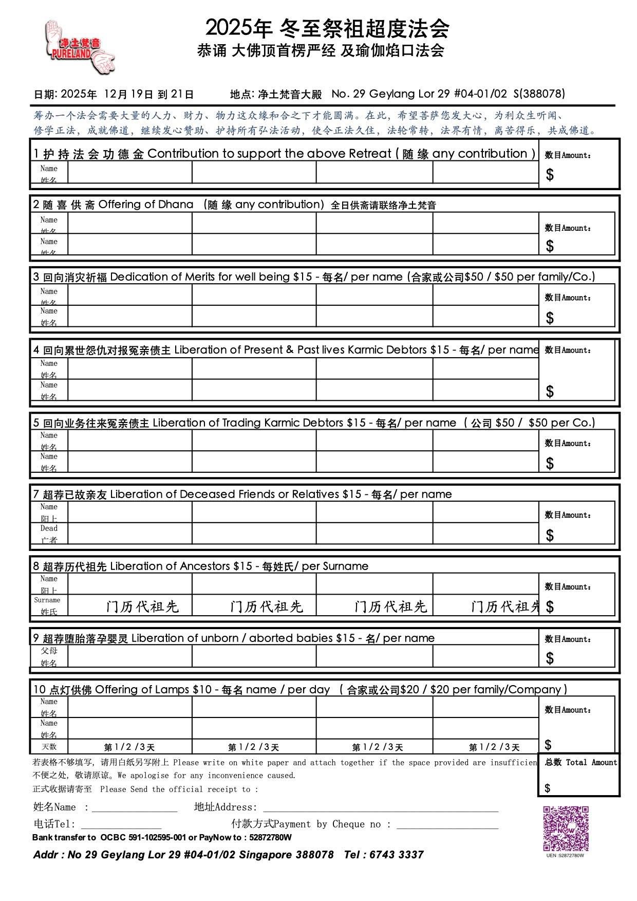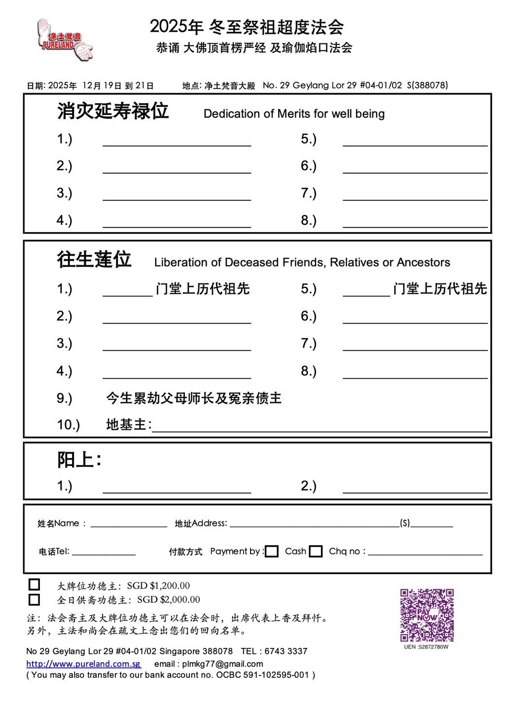 2025年 冬至祭祖超度法会恭诵 大佛顶首楞严经 及瑜伽焰口法会 (大牌位 , 全日供斋功德主)